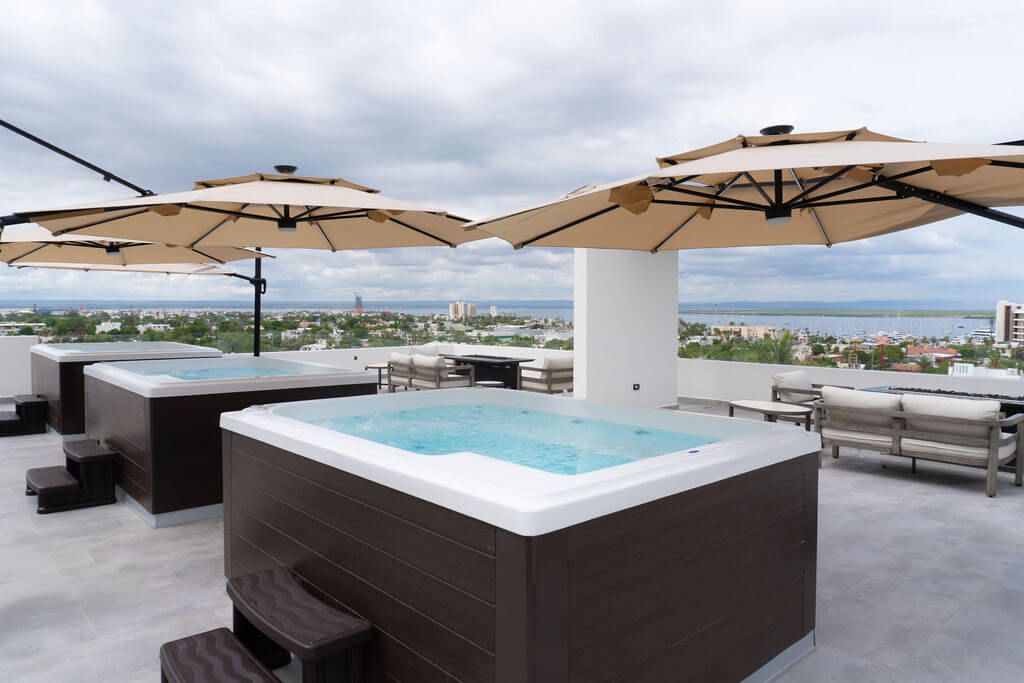 El gran atractivo es el rooftop del edificio: un santuario con vistas panorámicas a la Bahía de La Paz, jacuzzis para relajarte, áreas de asador, lounge para momentos sociales y un gimnasio completamente equipado.