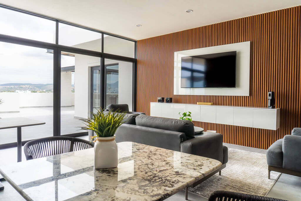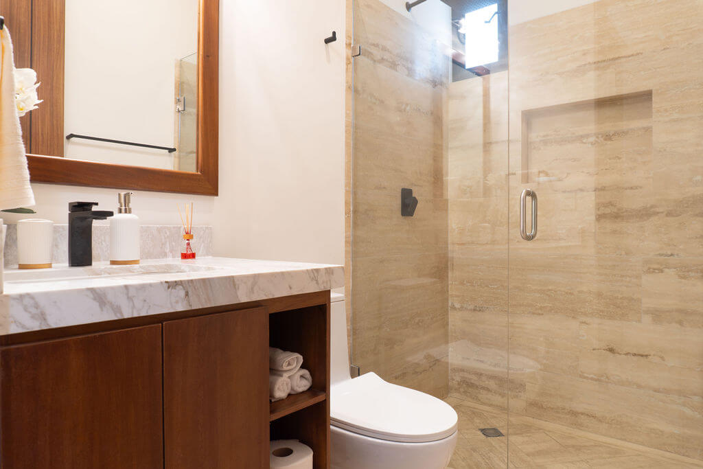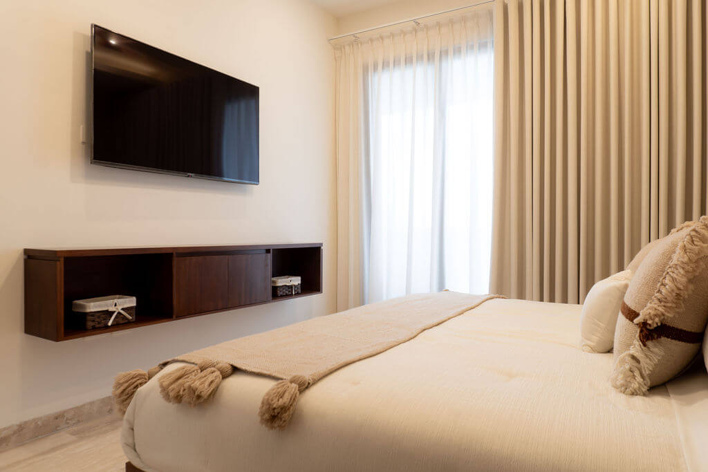 Cada recámara cuenta con cama King size, baño privado, Smart TV y wifi de alta velocidad, ofreciendo el equilibrio perfecto entre privacidad y amenidades modernas.