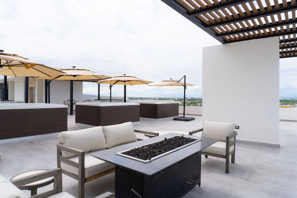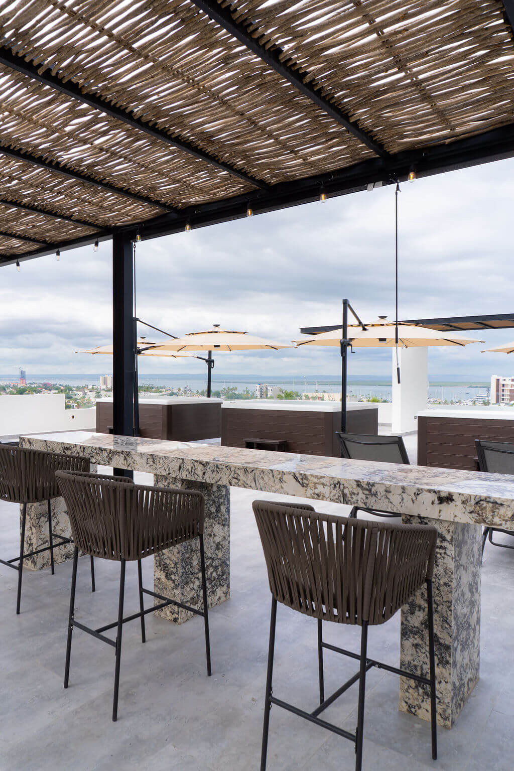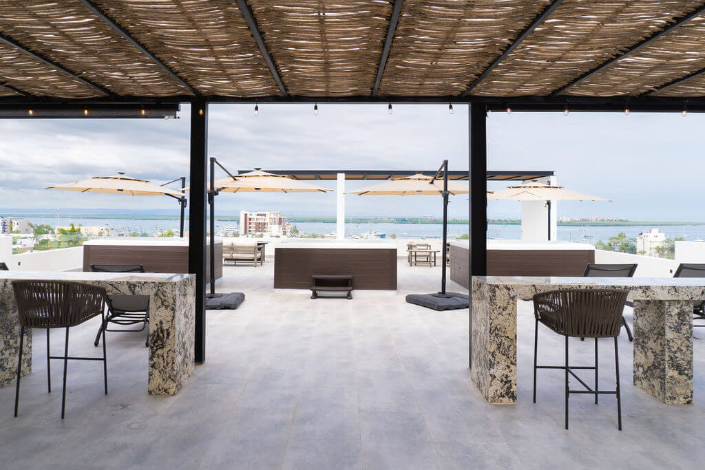 El gran atractivo es el rooftop del edificio: un santuario con vistas panorámicas a la Bahía de La Paz, jacuzzis para relajarte, áreas de asador, lounge para momentos sociales y un gimnasio completamente equipado.