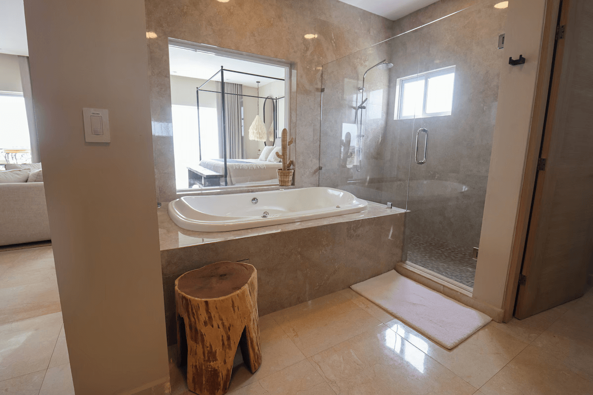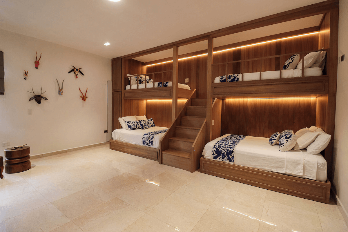 Diseñada para alojar cómodamente a grupos grandes, Casa Carousel cuenta con seis habitaciones elegantemente decoradas, cada una con ropa de cama de lujo y un ambiente acogedor. En la planta baja, la Habitación 1 es un dormitorio tipo litera con 2 camas queen y 2 individuales, mientras que la Habitación 2 ofrece 1 cama king y un sofá cama queen. En el primer piso, la Habitación 3 incluye 1 cama king y un sofá cama queen, la Habitación 4 cuenta con 1 cama king y la Suite Principal ofrece 1 cama king con vistas espectaculares al mar. En el segundo piso, la Habitación 6 dispone de 2 camas queen y está disponible por un costo adicional. Además, la villa cuenta con 6 baños completos, un medio baño y un baño en la zona de la piscina, ofreciendo comodidad y privacidad a cada huésped.