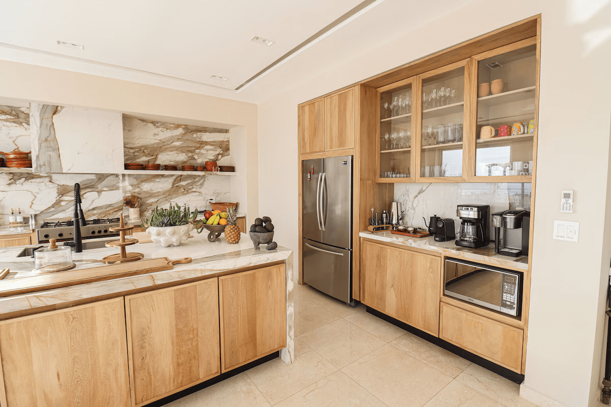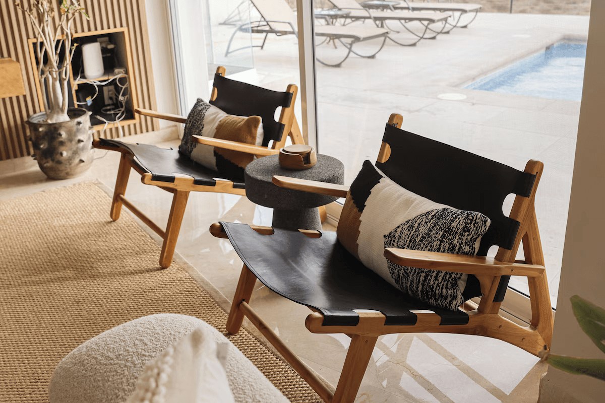 El exterior de la villa es un verdadero oasis, con una piscina privada y una terraza de lujo, donde podrás disfrutar del sol de Baja, relajarte con un cóctel bajo la pérgola o reunirte alrededor de la fogata mientras el sol se esconde sobre la bahía. La cocina gourmet totalmente equipada es perfecta para quienes disfrutan cocinar o para contratar un chef privado y vivir una experiencia gastronómica exclusiva.