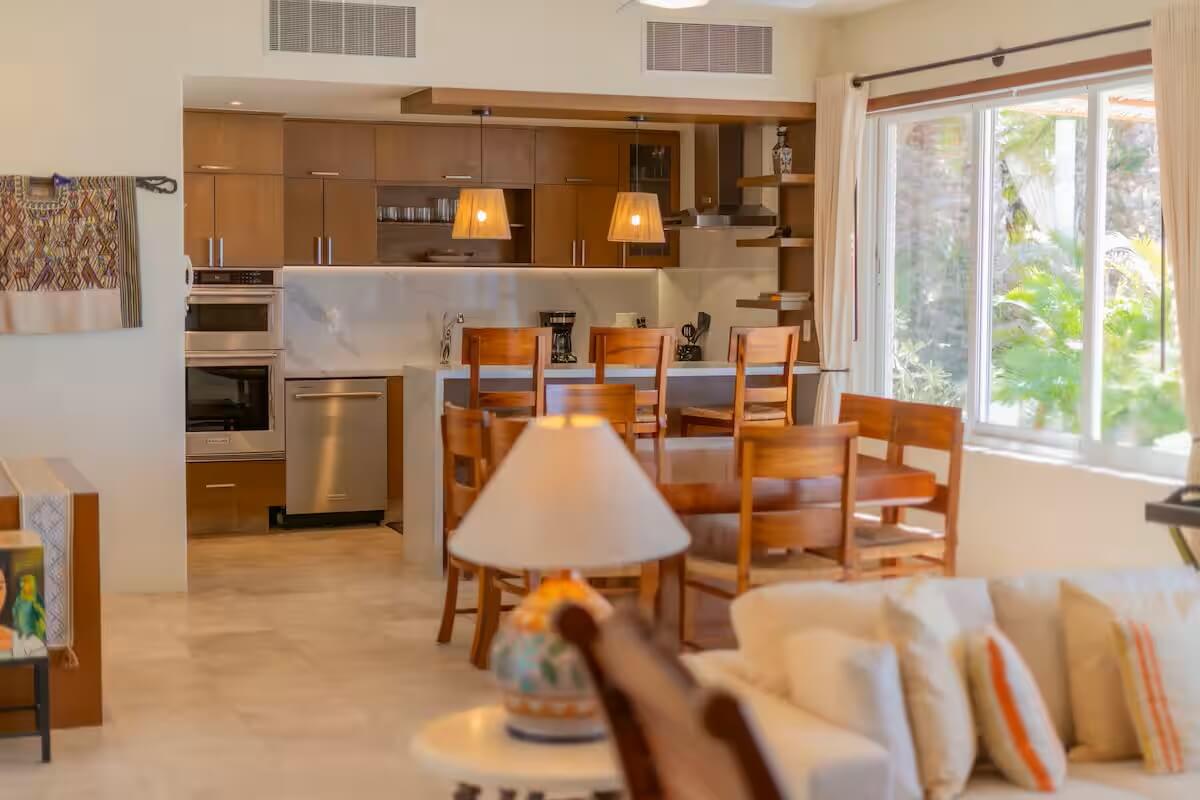 Rodeada de una playa de arena blanca y un sinfín de comodidades. Disfruta de los mejores atardeceres y enamórate de La Paz. Esta hermosa propiedad está junto al nuevo club de playa “Puerto”. Cuenta con 3 dormitorios y 3 baños completos, carrito de golf, kayaks dobles y stand up paddle boards para uso y disfrute de nuestros huéspedes. También incluimos limpieza durante tu estadía.